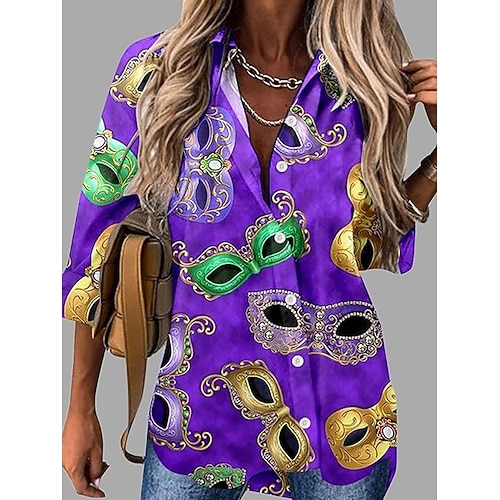Carnevale Per donna Camicia Blusa Grafico Astratto Vintage Elegante Casual Manica Lunga Colletto a Camicia Top Regolari Quotidiano Bottoni Stampato Nero Giallo Viola Estate Primavera Autunno