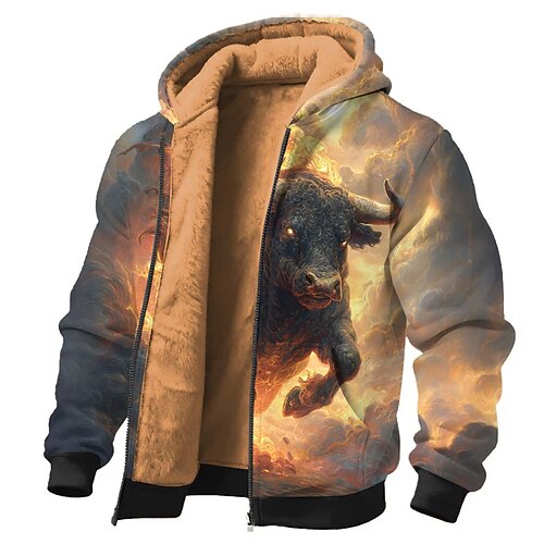 Per uomo Vichingo Cappotto Invernale Giacca in Pile Cappotto Calore Termico Confortevole Vintage Casuale Abbigliamento quotidiano Cerniera Tasca Stampa 3D Autunno Inverno Con Cappuccio Manica Lunga