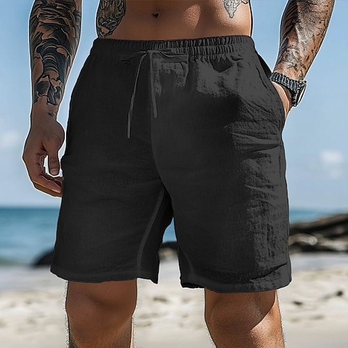 Per uomo Pantaloncini Pantaloncini estivi Pantaloncini da spiaggia Pantaloncini larghi A cordoncino Vita elastica Gamba dritta Liscio Comfort Traspirante Breve Esterno Informale Giornaliero Classico