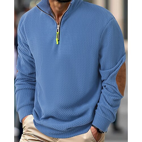 Per uomo Polo Polo con zip a un quarto Abbigliamento quotidiano Data Zip a un quarto Manica Lunga Moda Essenziale Semplice Jacquard Cerniera Autunno Inverno Vestibilità regolare Nero Azzurro cielo