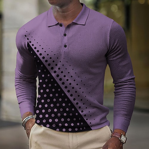 Per uomo A Pois Geometrico Magliette Polo a Nido d'Ape Manica Lunga Magliette polo Camicie con Colletto Casual Abbigliamento quotidiano Bottoni Primavera Autunno Inverno Blu Viola Marrone