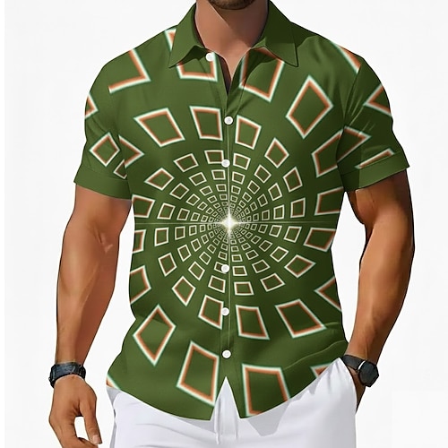 Per uomo Geometrico Colore abbagliante Vortice 3D Camicia Camicia con Bottoni Manica Corta Moda Casual Quotidiano Vacanza Estate Primavera Collo ripiegato Stampa 3D camicie con colletto Nero Verde