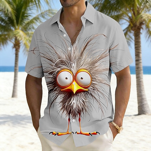 Per uomo Cartoni animati Uccello Pulcino Camicia hawaiana estiva Camicia con Bottoni Camicia Aloha Manica Corta Divertente Vacanza Ferie Abbigliamento mare Estate Primavera Collo ripiegato Stampa 3D