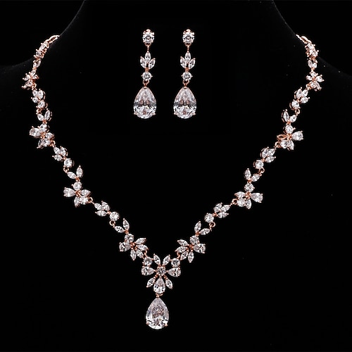 I monili nuziali 1 set Zircone cubico Rame 1 collana Orecchini Per donna Lusso Elegante goccia Parure di gioielli Per Matrimonio Feste Anniversario