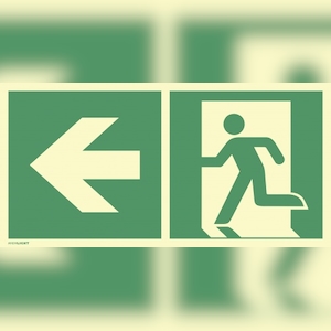 Notausgang rechts Pfeil oben, Kombi, ISO 7010,PVC-U selbstkl.,160-mcd,297x148 mm