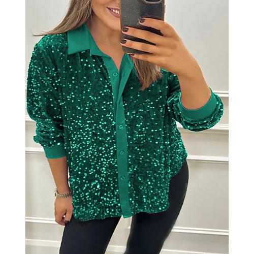 Per donna Camicia Blusa Semplice Vintage Tropicale Elegante Manica Lunga Colletto a Camicia Top Regolari Quotidiano Ferie Uscire Paillettes Bottoni Rosso Viola Verde Autunno Inverno