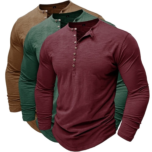 Maglietta Henley da uomo a maniche lunghe, tinta unita, alla moda, casual, confezione multipla da 3 pezzi, per attività all'aperto, casual, estate, primavera, blu, bianco e nero.