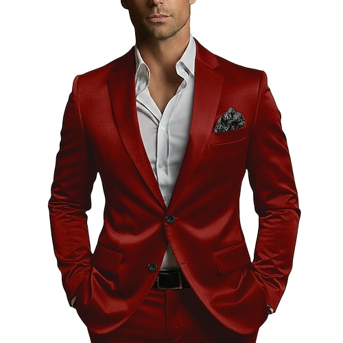 Abiti casual da uomo in velluto da festa, con revers a lancia, giallo rosso, alla moda, tinta unita, vestibilità su misura, 2 pezzi, monopetto, due bottoni