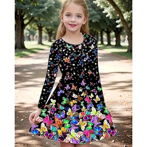 ragazze' 3D Farfalla Abito Manica Lunga Estate Primavera Vacanza Quotidiano Ferie Principessa Bello Dolce Bambini 4-12 Anni Vestito Casual Abito a trapezio Lunghezza al ginocchio Vestibilità regolare