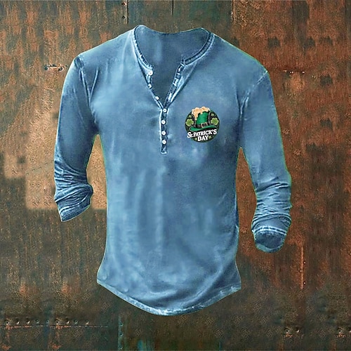 Per uomo Maglietta per il giorno di San Patrizio Maglietta trifoglio di San Patrizio Maglia Henley Maglietta Manica Lunga Henley Primavera Estate Giorno di San Patrizio Moda Festa di San Patrizio