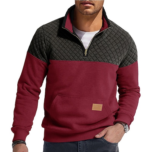 Per uomo Maglia Felpa a nido d'ape Maglione Felpa con zip corta Blu Verde militare Borgogna Marrone Cachi Colletto Mao Semplice Patchwork Blocco di colore Testurizzato Sport Outdoor Casuale