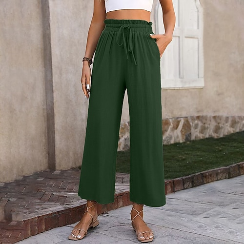Per donna Pantaloni in cotone e lino Gamba larga Chinos Vacanza Streetwear Casual Lunghezza alla caviglia Vita media Tinta unica Semplice Coulisse Tasca Confortevole Traspirante Micro-elastico