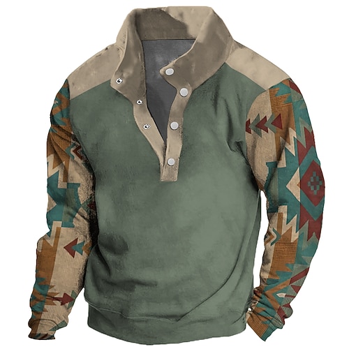 Per uomo Etnico Felpa Felpa Felpa Chiusura lampo quarto Giornaliero Etnico Vacanze Con stampe Per eventi 1/4 zip Inverno Primavera Autunno