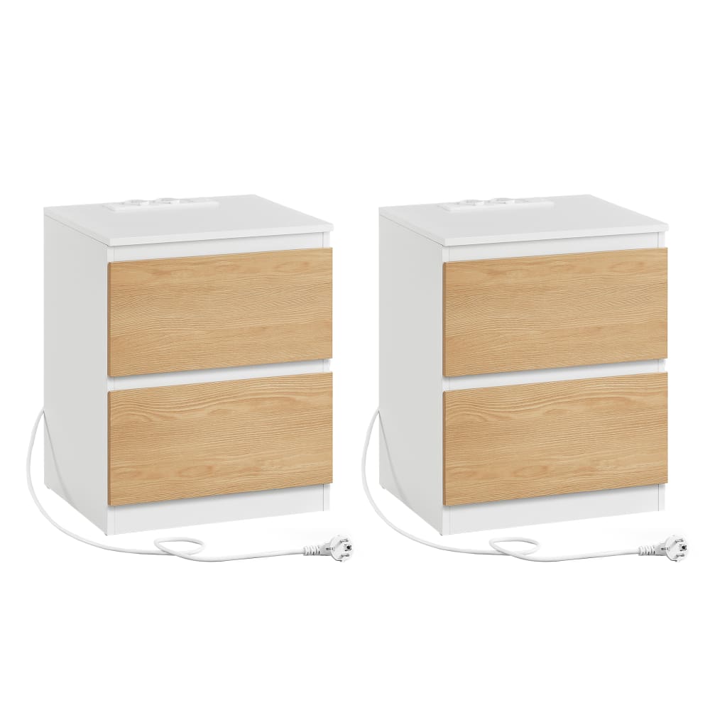 Lot de 2 table de chevet avec multiprise 2 tiroirs 2 prises ca jaune