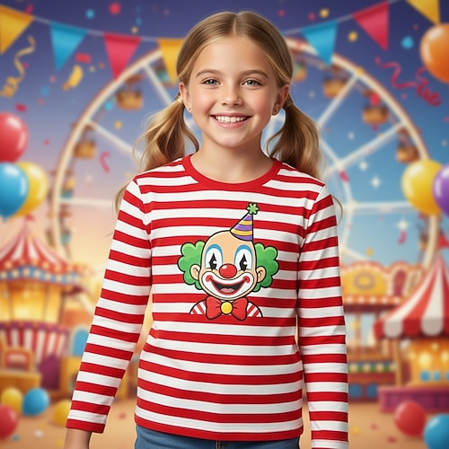 Costume di Carnevale 2026 Ragazze 3D Grafico A righe Pagliaccio Maglietta Manica Lunga Stampa 3D Primavera Autunno Sport Moda Streetwear Bambini 4-12 Anni Girocollo Casuale Quotidiano All'aperto