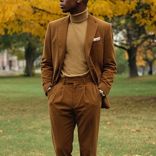 Uomo Affari Casuale Completi in Tweed Bavero classico Nero Borgogna Affari Formale Tinta unita Vestibilità su misura 2 pezzi Monopetto Due Bottoni