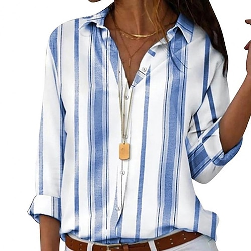 Per donna Camicia Blusa A righe Vintage Elegante Manica Lunga Colletto a Camicia Top Regolari Quotidiano Ferie Uscire Bottoni Blu Giallo Rosso Grigio Estate Primavera Autunno
