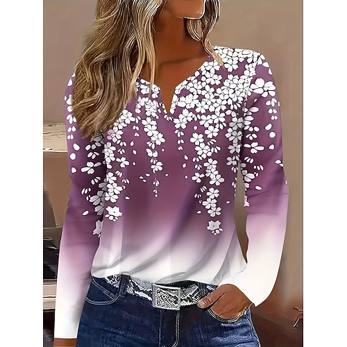 Per donna Maglietta Ombre Floreale Grafico Vintage Elegante Classico Manica Lunga Scollo a V Collo a V Top Regolari Quotidiano Weekend Stampato Rosa Viola Primavera Autunno Inverno