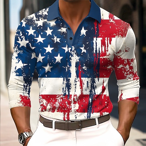 Per uomo Geometrico Linea Polo Manica Lunga Magliette polo Bavero Business Casual Athleisure Abbigliamento quotidiano Stampa 3D Bottoni Primavera Autunno Inverno Rosso Blu Verde