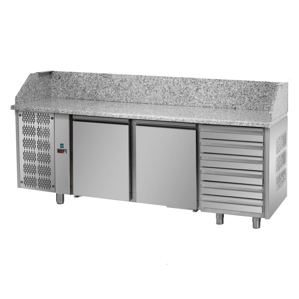 Tecnodom Pizzatheke 3 Türen Prof. 80 Motorblock SX 6 neutrale Schubladen und Granit Top
