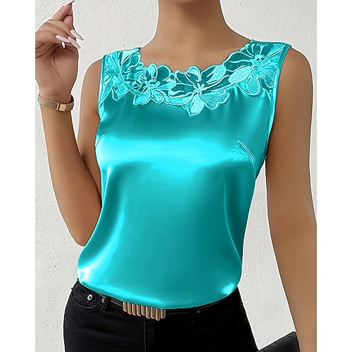 Per donna Camicia Elegant Raso/Satin Blusa Tinta unica Semplice Elegante Essenziale Casual Senza Maniche Girocollo Top Regolari Quotidiano Ferie Uscire Pizzo Patchwork Blu Viola Albicocca Estate