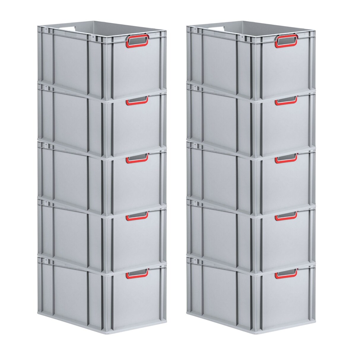 PROREGAL 10x Eurobox NextGen Color | HxBxT 32x40x60cm | 65 Liter | Griffe rot offen | Verstärkter Boden | Eurobehälter