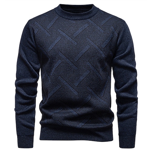 Per uomo Maglione Maglione a maglia A Coste Maglia Top Regolari Lavorato a maglia Geometrico Girocollo Moda Essenziale Vacanza Abbigliamento quotidiano Abbigliamento Autunno Inverno Blu Vinaccia L
