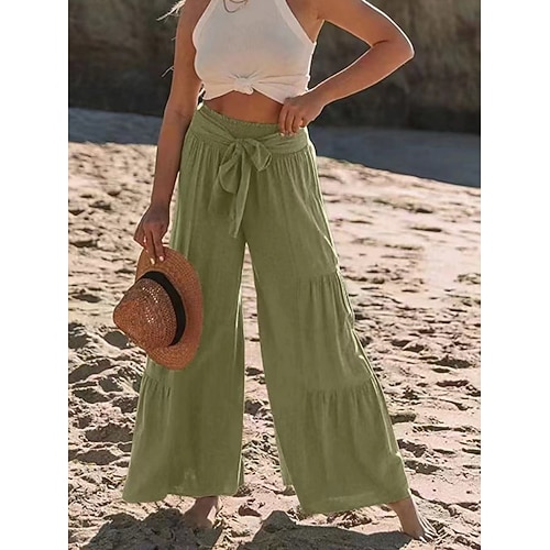 Per donna Pantaloni in cotone e lino Chinos Vacanza Streetwear Casual Lunghezza alla caviglia Vita media Tinta unica Coulisse Tasca Confortevole Traspirante Micro-elastico Quotidiano All'aperto