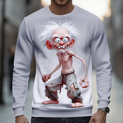 Per uomo 3D Vecchio Uomo Felpa Casual Manica Lunga Girocollo Vacanza Feste Regalo Marrone chiaro Bianco Cachi Grigio Girocollo 3D Tutte le stagioni progettista S M L XL XXL XXXL