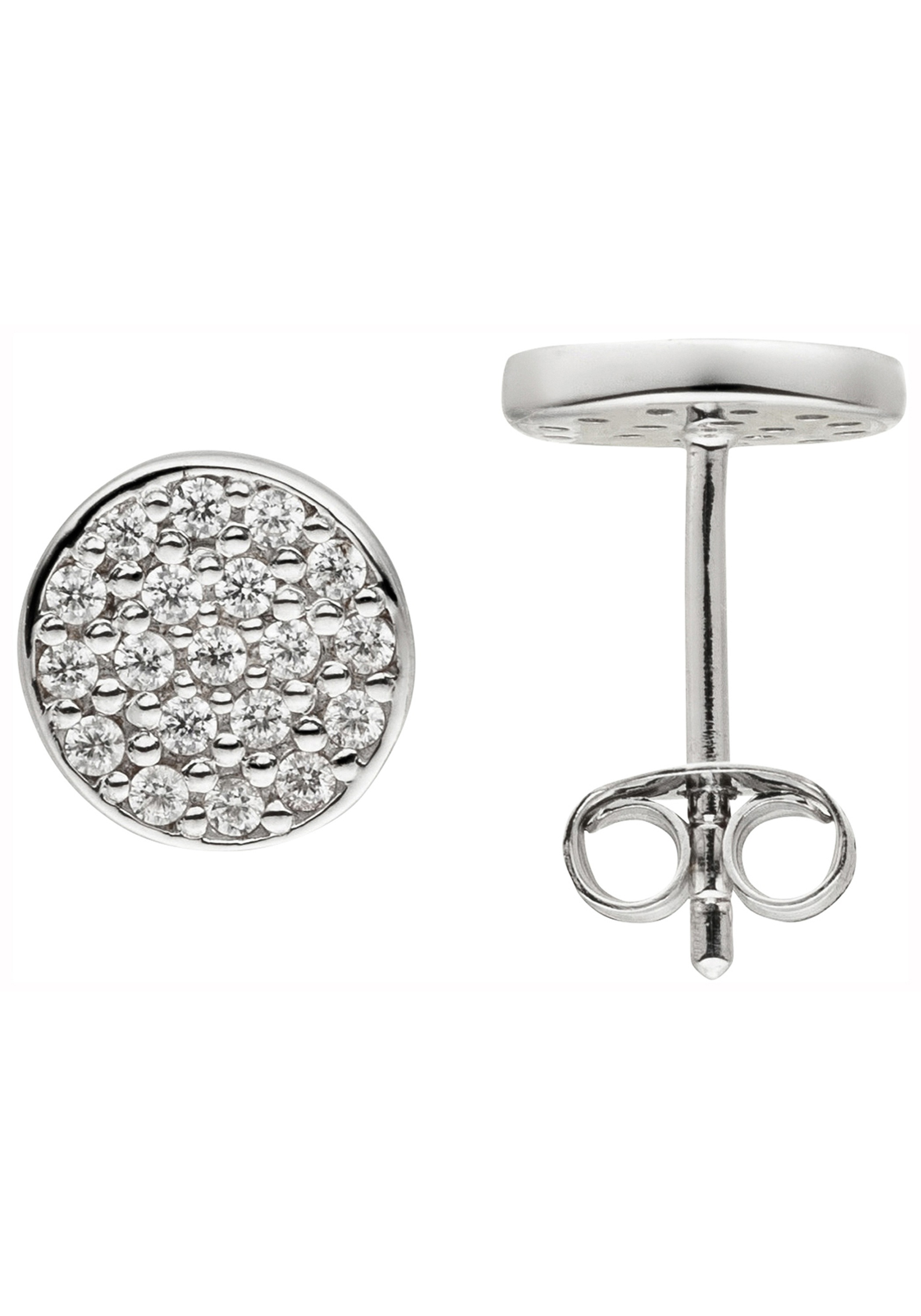 Paar Ohrstecker JOBO, silber (silber 925, weiß), Ohrringe, Damen, Silber 925 (Sterlingsilber), 925 Silber mit 38 Zirkonia 8 mm