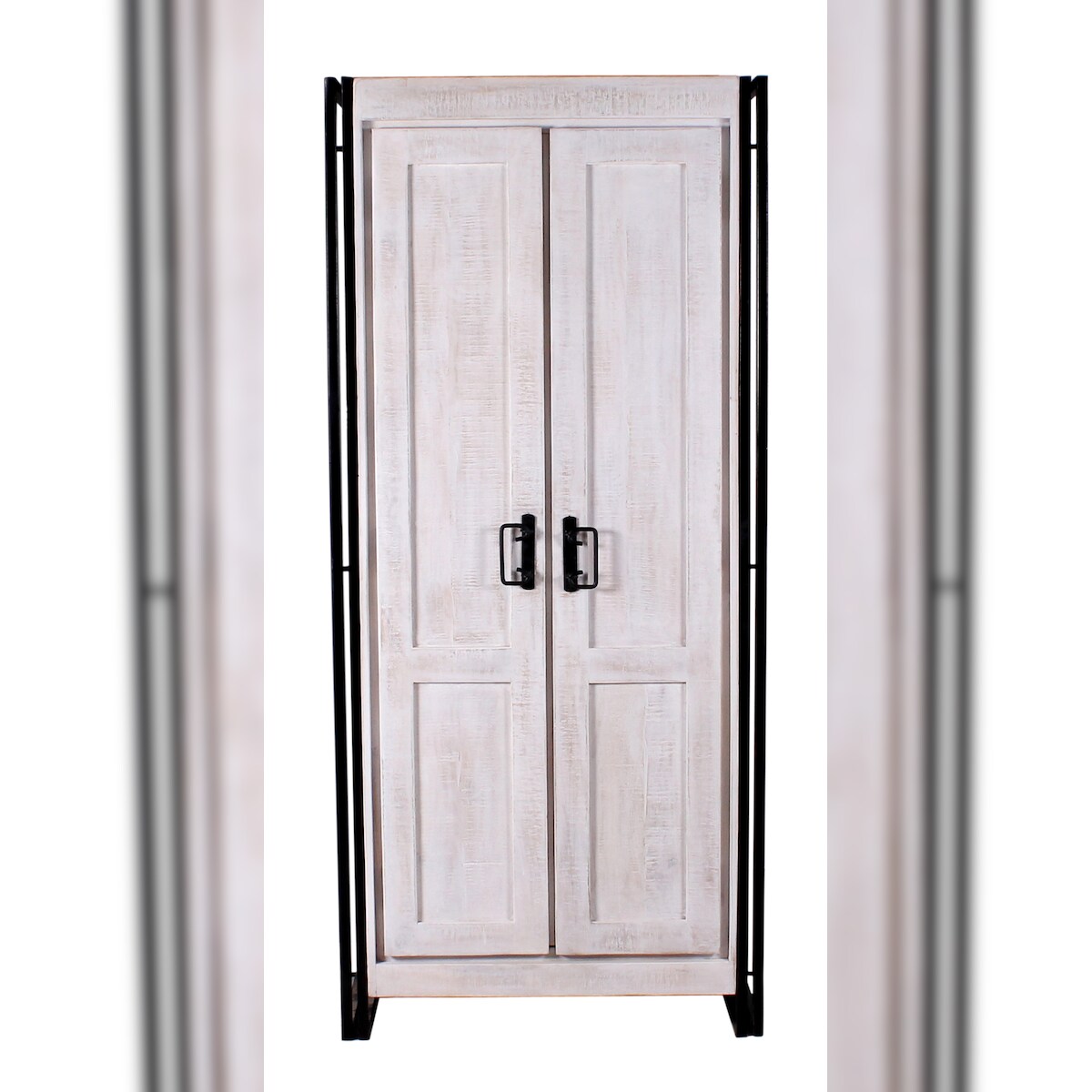 SIT Möbel Schrank, 2 Türen, 3 Böden, 1 Kleiderstange, Mango weiß, Altmetall antikschwarz, B 80 x T 45 x H 180 cm,serie WHITE PANAMA