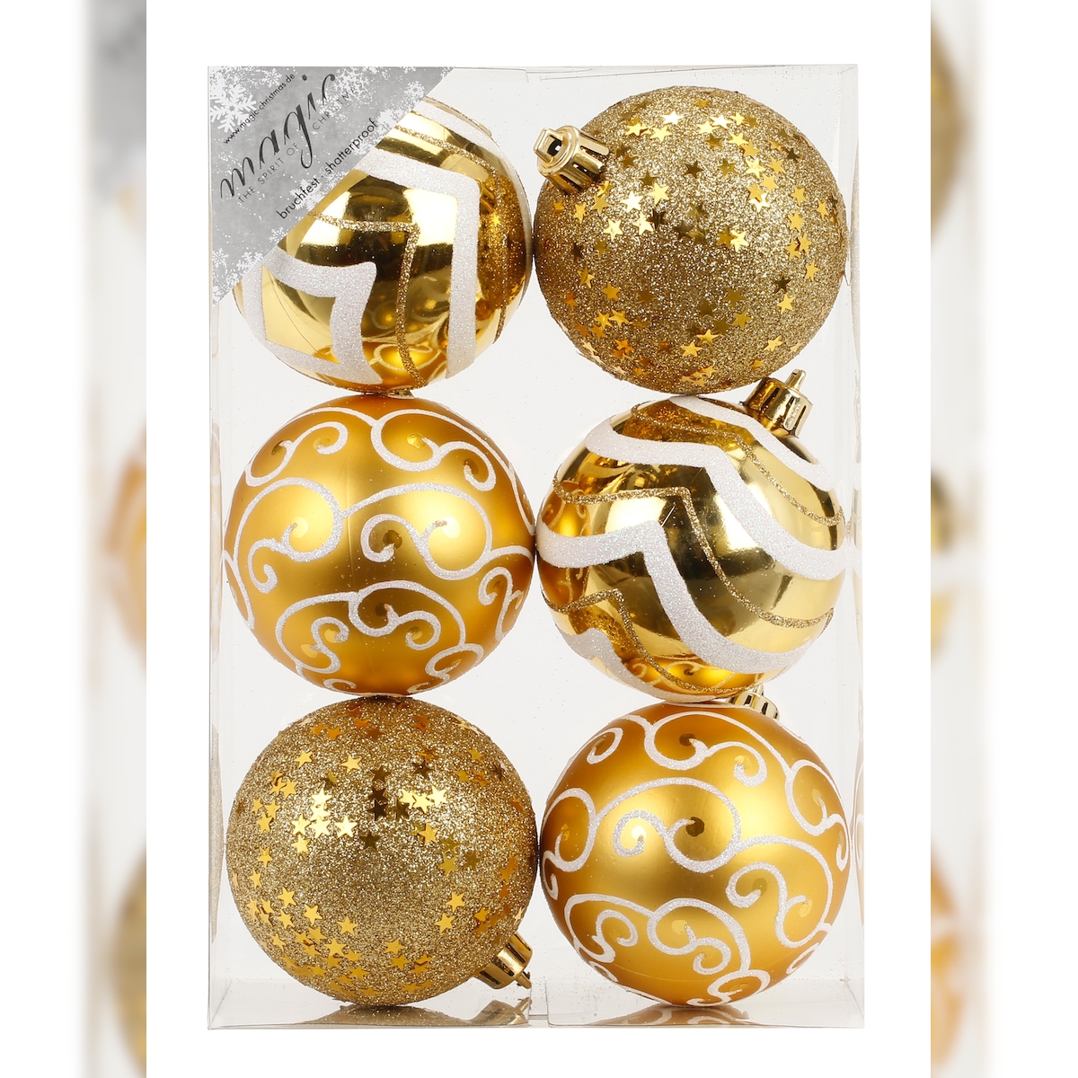 6 Weihnachtskugeln 8cm Kunststoff Christbaumkugeln Weihnachtsbaumkugeln gold