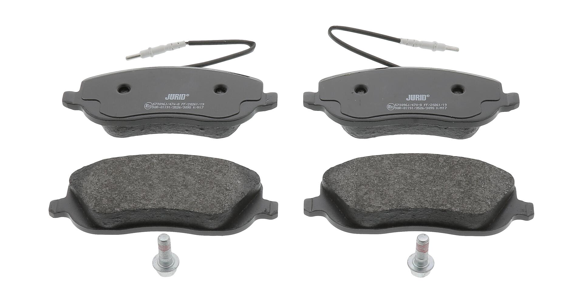 JURID Bremsbelagsatz, Scheibenbremse 573096J vorne rechts links mit Zubehör für PEUGEOT FIAT CITROËN LANCIA 9949552 1617258380 77363956