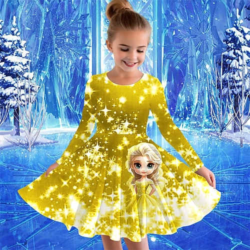 ragazze' 3D Pop art Fiocco di neve Vestito Abito fiocco di neve Manica lunga Estate Primavera Da mare Giornaliero Per eventi Da principessa Bellissimo Dolce Bambino 4-12 anni Abito casual Abito linea