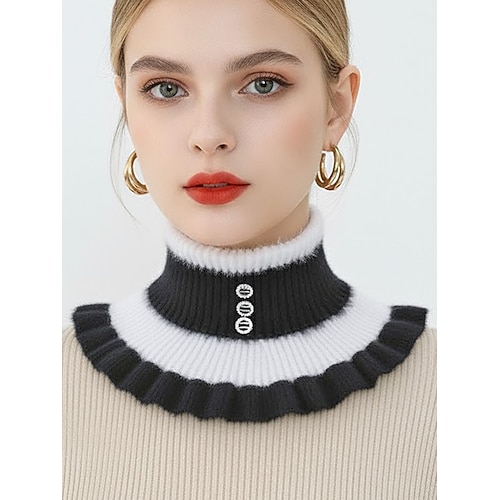 colletto natalizio in maglia pelosa da donna: morbido e accogliente misto lana con motivo a balze, disponibile in più colori, perfetto per l'inverno e le feste