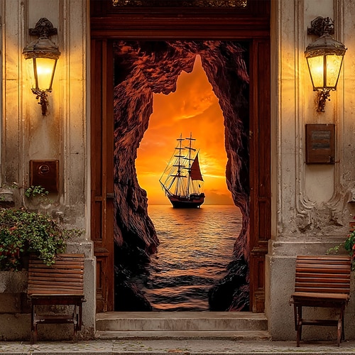 Copriporta, striscioni per esterni, veliero oceanico, estetico, mistico, camera da letto, soggiorno, dormitorio, camera per adolescenti, dormitorio universitario, decorazioni, parete, porta, sfondo