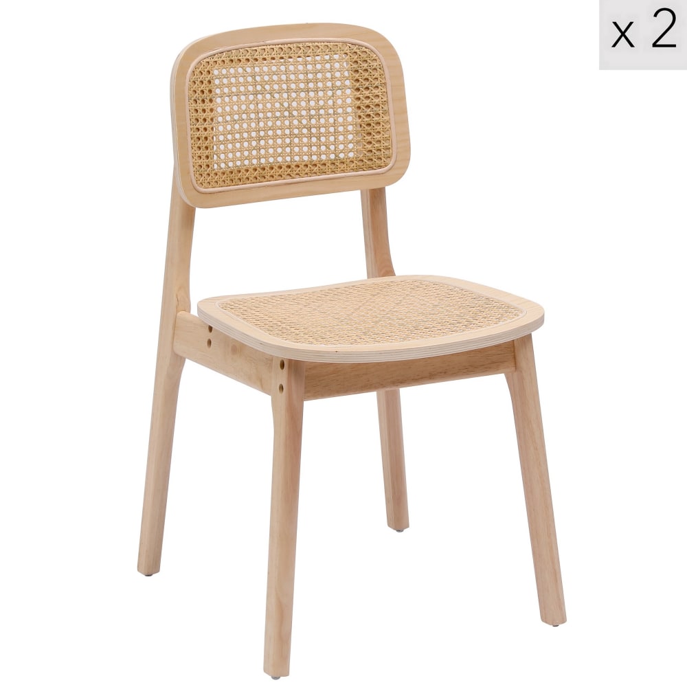 Set 2 sedie in legno e rattan