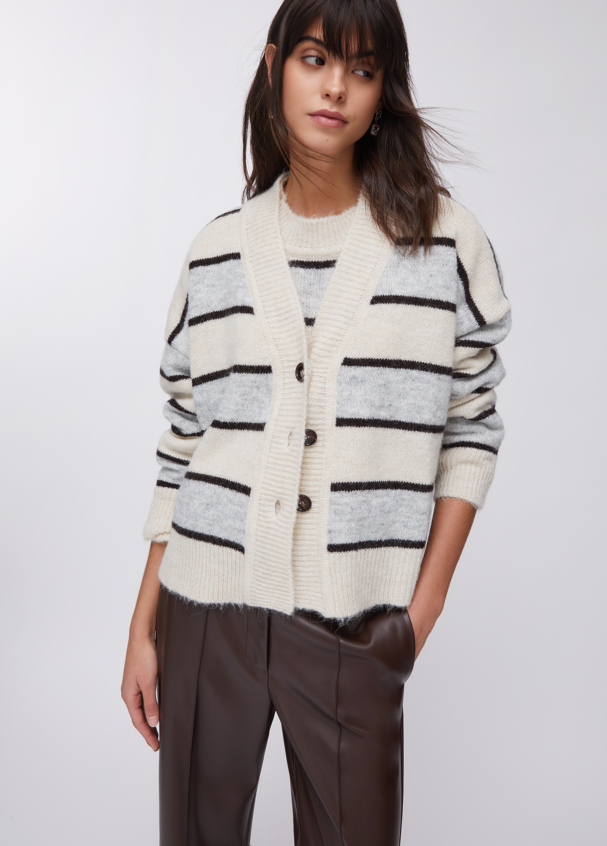 Liu Jo Cardigan A Righe In Lana E Alpaca, Grigio E Beige, L