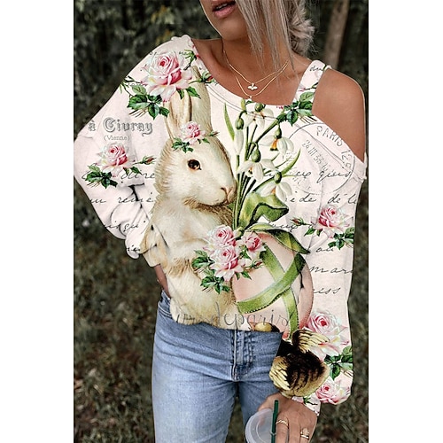 Per donna Camicia Blusa Con cuori Carnevale Informale Per uscire Bianco Verde chiaro Rosso Stampa Manica lunga Di tendenza Monospalla Standard Primavera Autunno
