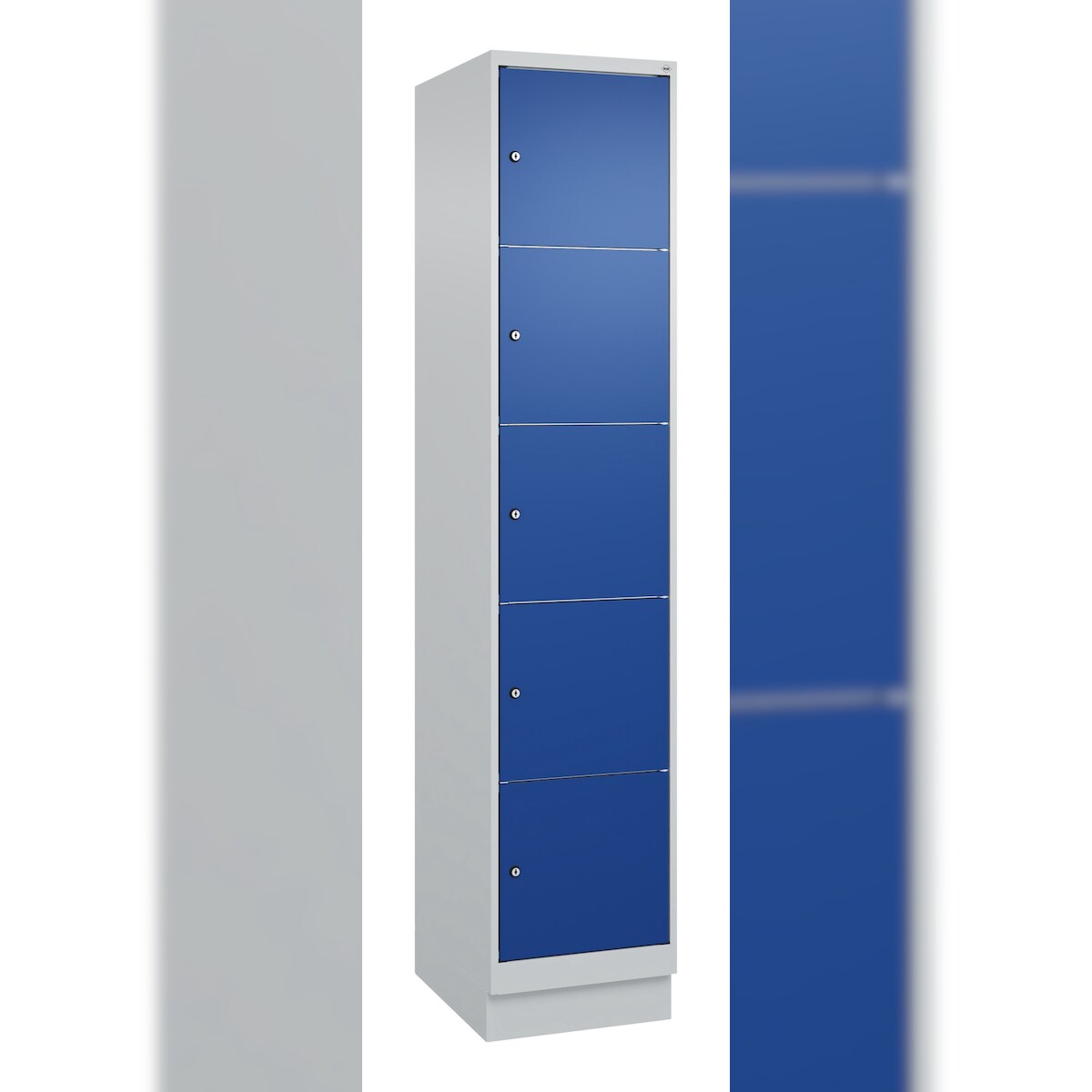 C+P Schließfachschränke Classic PLUS, Sockel, 5 Abteile, HxBxT 195x40x50cm, Zylinderschloss, Hellgrau/Enzianblau von PROREGAL