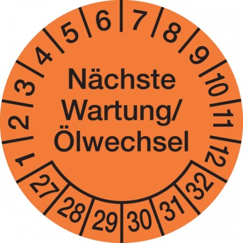 König Werbeanlagen Prüfplakette ab 27, Wartung/Ölwechsel Ø 30mm - Bogen = 10 Plaketten - 30 mm Folie selbstklebend