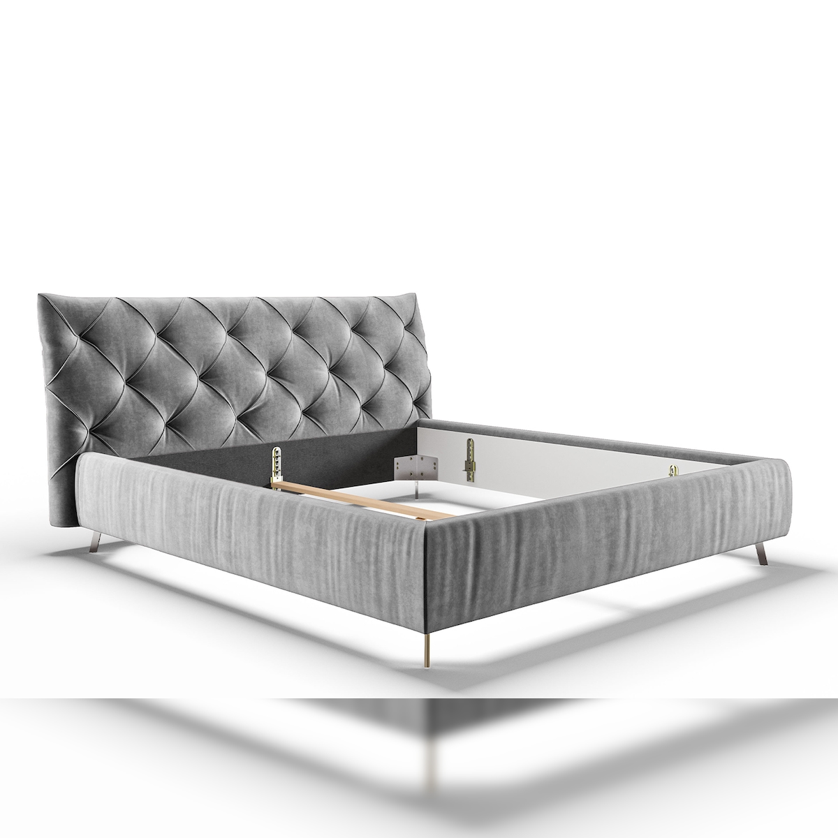 KAWOLA Bett ANNY Polsterbett Kopfteil niedrig Velvet silber 160x200cm