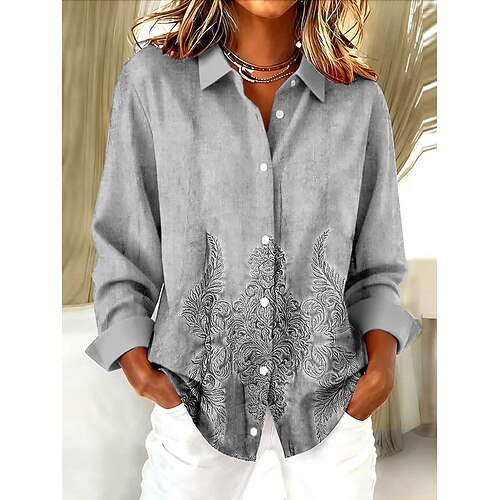 Per donna Camicia Blusa Grafico Geometrico Vintage Tropicale Elegante Manica Lunga Colletto a Camicia Top Regolari Quotidiano Patchwork Bottoni Stampato Blu Viola Verde Grigio Estate Primavera