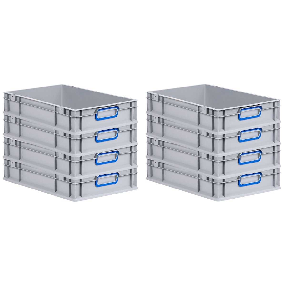 PROREGAL 8x Eurobox NextGen Color | HxBxT 12x40x60cm | 23 Liter | Griffe blau geschlossen | Glatter Boden | Eurobehälter