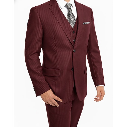 Uomo Matrimonio Abiti da sposa Bavero classico Borgogna Formale Tinta unita Vestibilità aderente 3 pezzi