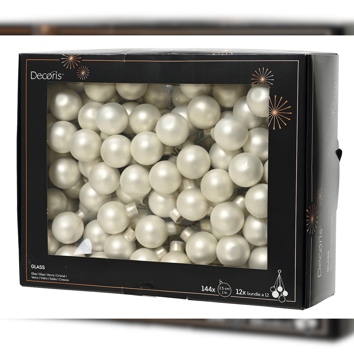 144 Glaskugeln am Draht 2,5cm Weihnachtskugeln Spiegelbeeren zum Basteln weiß