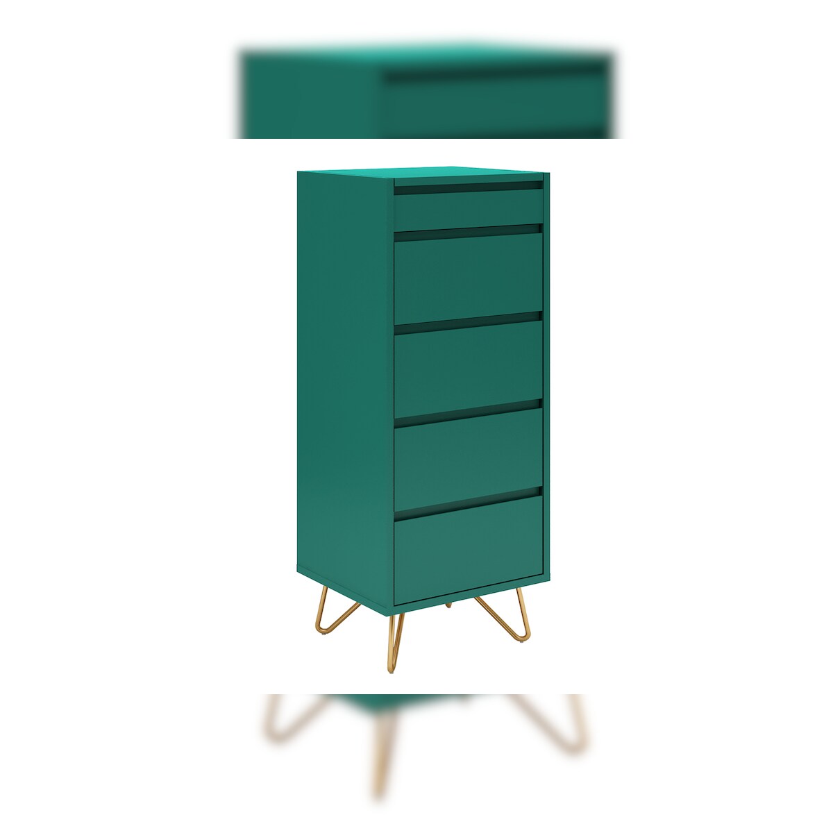 SalesFever Kommode hoch | 4 Schubladen und 1 Fach | inkl. Spiegel | Beine Metall mit Messinglegierung | B 45 x T 40 x H 110 cm | grün
