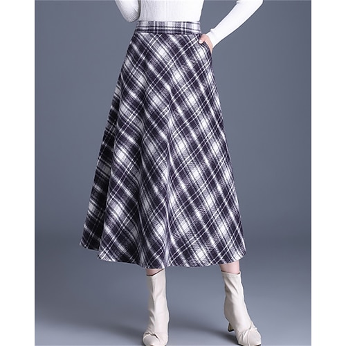Per donna Gonna scozzese Gonna Lunga Elegante Retrò Vintage Maxi Vita Alta Gonne Plaid Blocco di colori Tasca Lungo Micro-elastico Quotidiano Casual Quotidiano Aalbicocca Rosso Viola Autunno 100