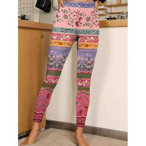 Per donna Leggings Vacanza Vintage Moda Lunghezza alla caviglia Vita Alta Grafico Motivo Geometrico Stampa Morbido Traspirante Alta elasticità Casuale Quotidiano Ferie Nero Rosa Blu Arancione