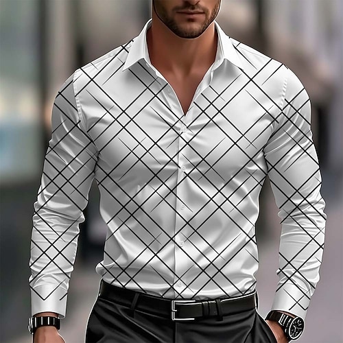 Per uomo Motivo Geometrico Linea Camicia Camicia in raso Camicia elegante Manica Lunga Business Casual Vacanza Abbigliamento Quotidiano Estate Primavera Autunno Collo ripiegato Stampa 3D Camicie con